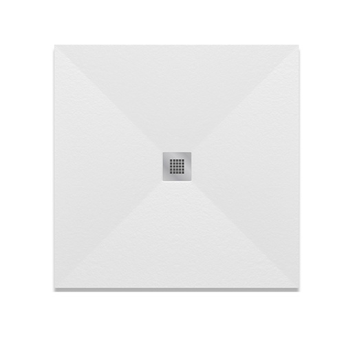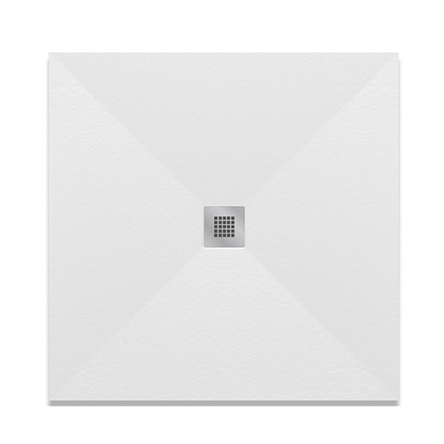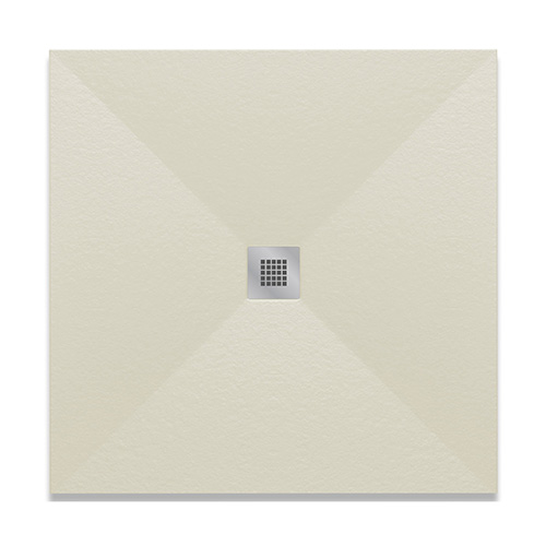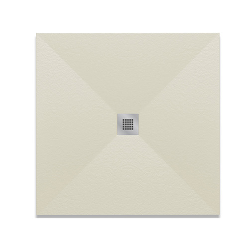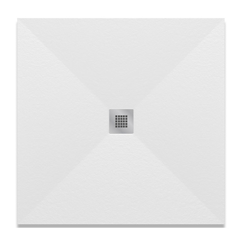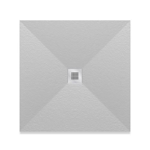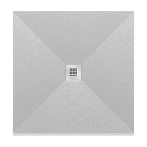 Piatto doccia quadro ultra piatto, in marmoresina effetto pietra, rivestito in gelcoat, classe antiscivolo C3. Disponibile in 3 colori. Griglia quadrata in acciaio inox AISI 304, spessore 1 mm. Fornito senza piletta (consigliata 371-397; 371-3952; 371-395; 371-3953). Si consiglia di posizionare il soffione o la doccetta in corrispondenza della piletta di scarico.