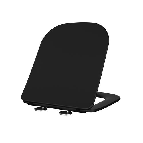 Sedile WC in termoindurente versione slim (Forma tipo 7), per vaso serie Primula sospeso e filo muro. Dimensioni: Lunghezza 43,5 cm; Larghezza 36 cm; Interasse cerniere 4,5-20,5 cm. Cerniere Soft closing regolabili, a sgancio rapido, tipo C ad espansione, avvitabili dall'alto.