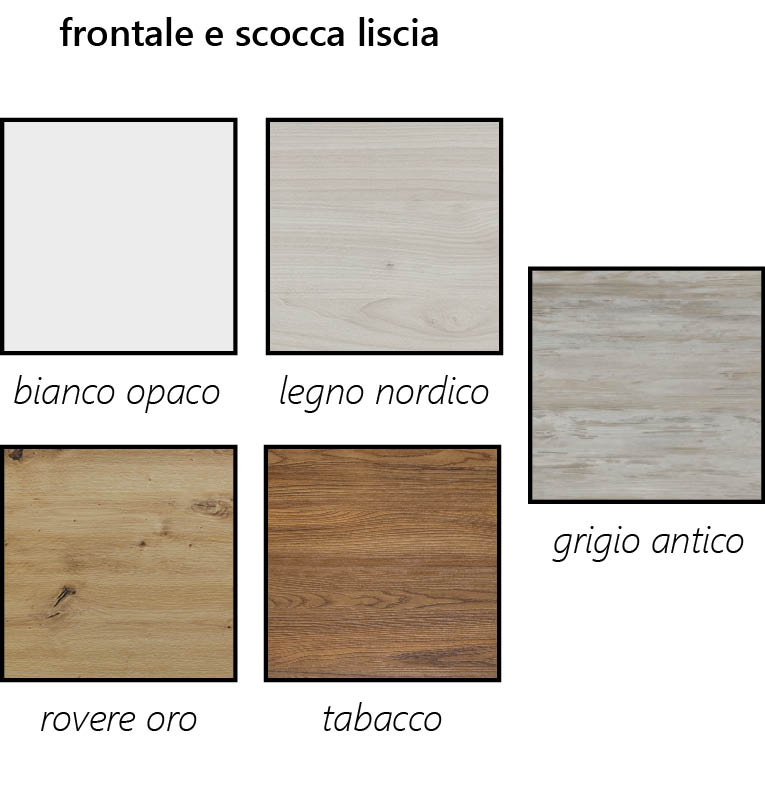 Base sospesa due cassetti e un'anta; sponde in metallo; chiusura rallentata, push open system. Frontale e scocca liscia. 100% MDF rivestito in pvc. Certificazione FSC. Lavabo in ceramica bianca.
