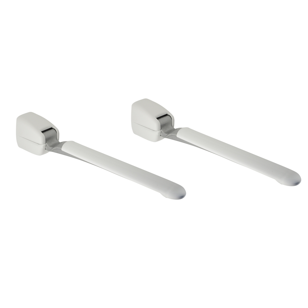 Realizzati per offrire un comodo sostegno, vengono utilizzati in abbinamento al sedile ribaltabile da muro. Forniti in coppia, sono dotati di solidi supporti in alluminio pressofuso, ribaltabile verso la parete per ridurne l’ingombro e per agevolarne l’accesso alla seduta; la superficie è in finitura antiscivolo per consentire un sicuro appoggio. I materiali utilizzati, tecnopolimeri, alluminio e acciaio inox, garantiscono massima igiene e una lunga durata. Non richiede manutenzione ed è facile da lavare.