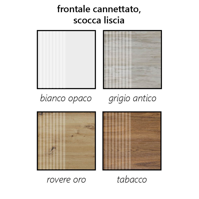 Colonna sospesa reversibile, due ante. Modello trio cannettato. Dimensioni: Lunghezza 31,4 cm; Altezza 130 cm; Profondità 31,5 cm. Materiale: MDF.