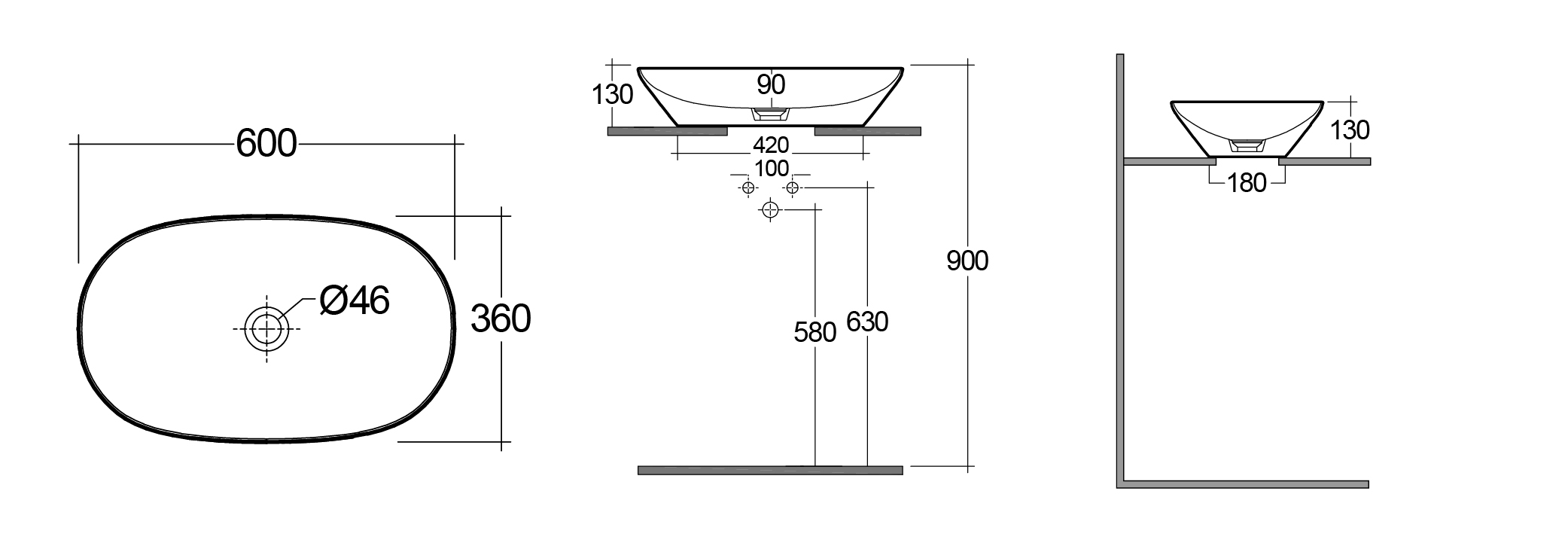 LAVABO DA APPOGGIO OVALE ALLUNGATO (SENZA FORO) VARIANT 60X36 CM