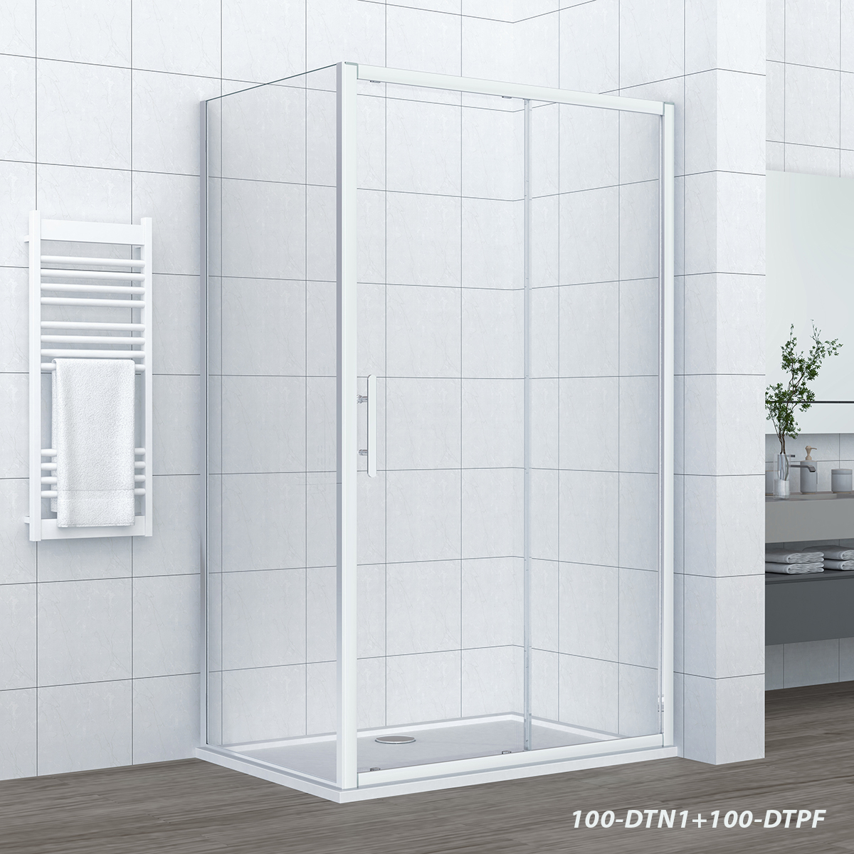 Parete fissa linea ZEN in vetro temperato trasparente da 6 mm e profilo cromato. Altezza 195 cm. Con sistema di montaggio semplificato. Da combinare con parete Zen 100-DTN1. Prodotto conforme ai standard EN 14428:2004. Regolazione in diminuzione di 2 cm.