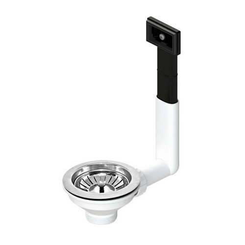 Piletta per lavello dal diam. 90 mm (entrata3''1/2) con troppo pieno, con cestello e gattinara in acciaio inox, scarico filettato da 1''1/2.