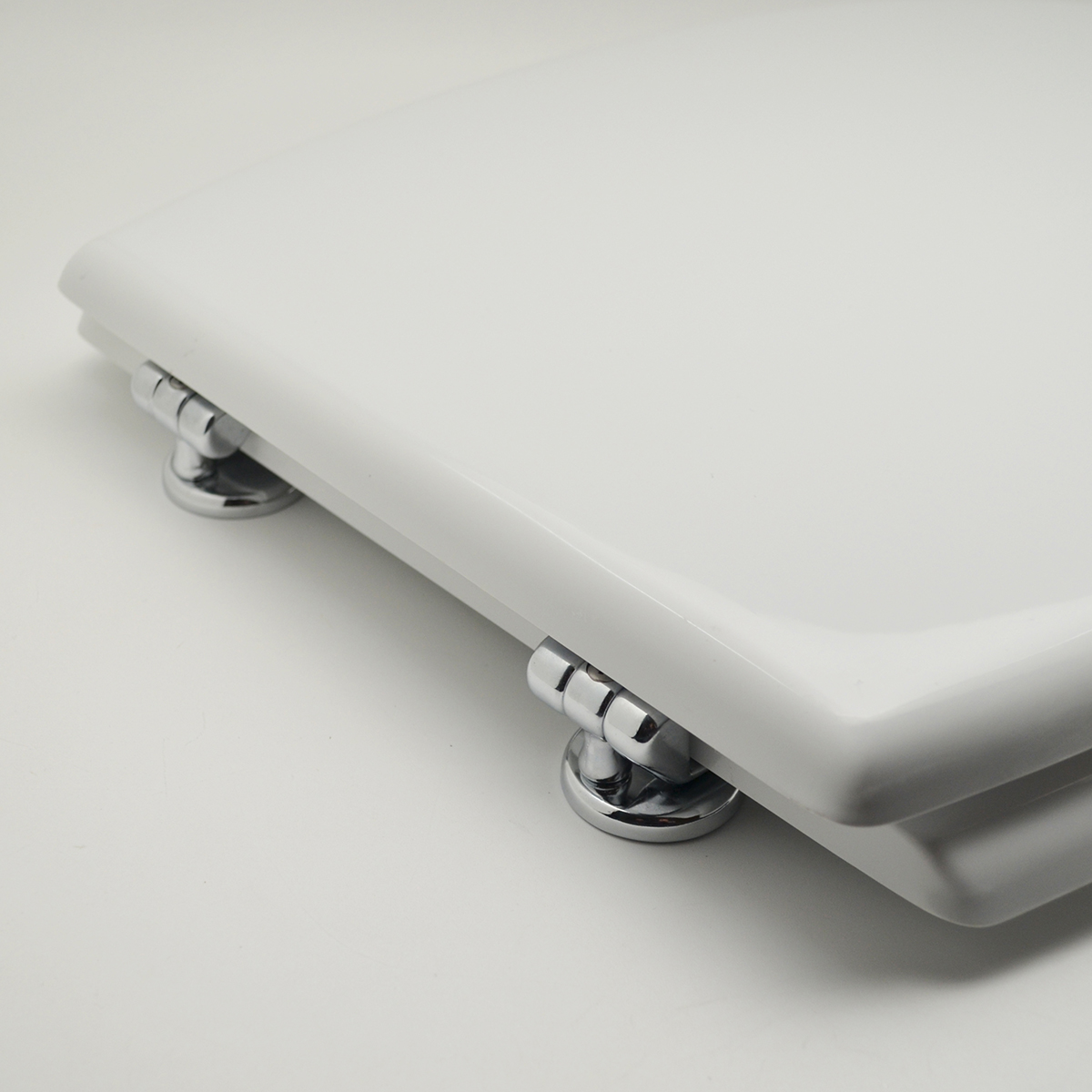 Sedile (Forma tipo 4 - cerniere tipo A) dedicato a casa ceramica Cesabo serie Alexandra. Dimensioni: Lunghezza cm 44-46,5; Larghezza cm 38; Interasse cerniere cm 13,5-18,5 mod. con cerniere regolabili. Sedile in legno stabilizzato, colato in poliestere. Cerniere in ottone cromato e viti di fissaggio in acciaio inox.