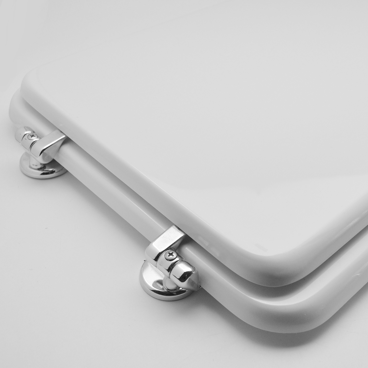 Sedile (Forma tipo 7 - cerniere tipo A) dedicato a casa ceramica Cierre serie Okay. Dimensioni: Lunghezza cm 45-48; Larghezza cm 36; Interasse cerniere cm 11,5-16,5. Cerniere regolabili. Sedile in legno stabilizzato, colato in poliestere. Cerniere in ottone cromato e viti di fissaggio in acciaio inox.