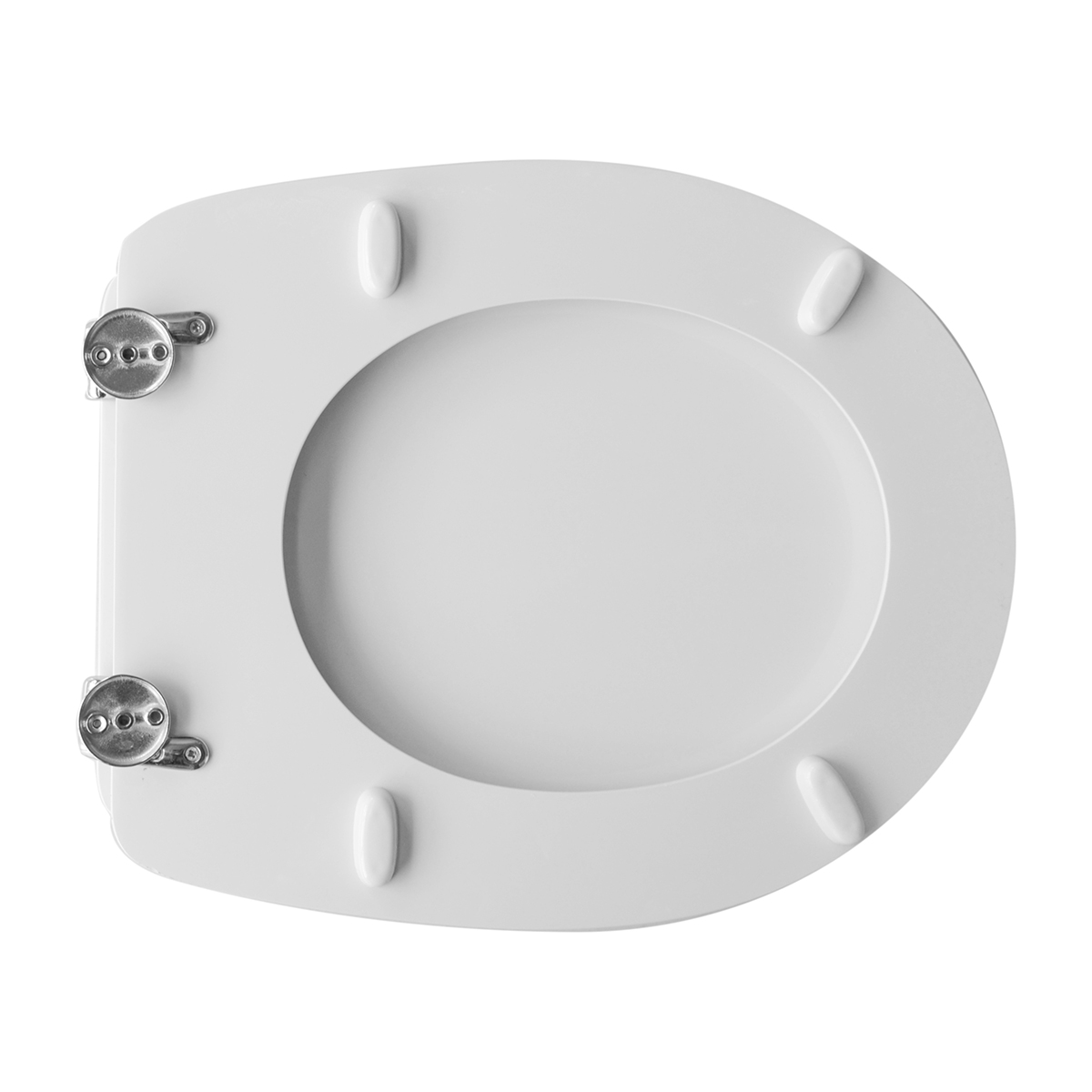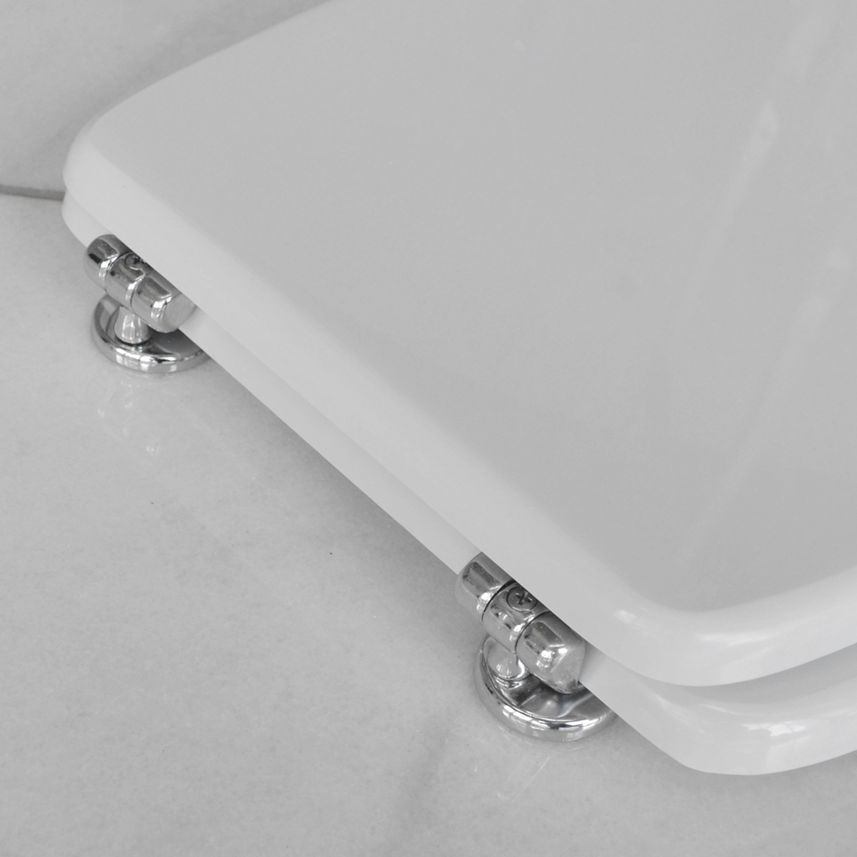 Sedile (Forma tipo 6 - cerniere tipo A) dedicato a casa ceramica Dolomite serie Garda. Dimensioni: Lunghezza cm 40,5-45,8; Larghezza cm 35,5; Interasse cerniere cm 11-21,5; Cerniere regolabili. Sedile in legno stabilizzato, colato in poliestere. Cerniere in ottone cromato e viti di fissaggio in acciaio inox.