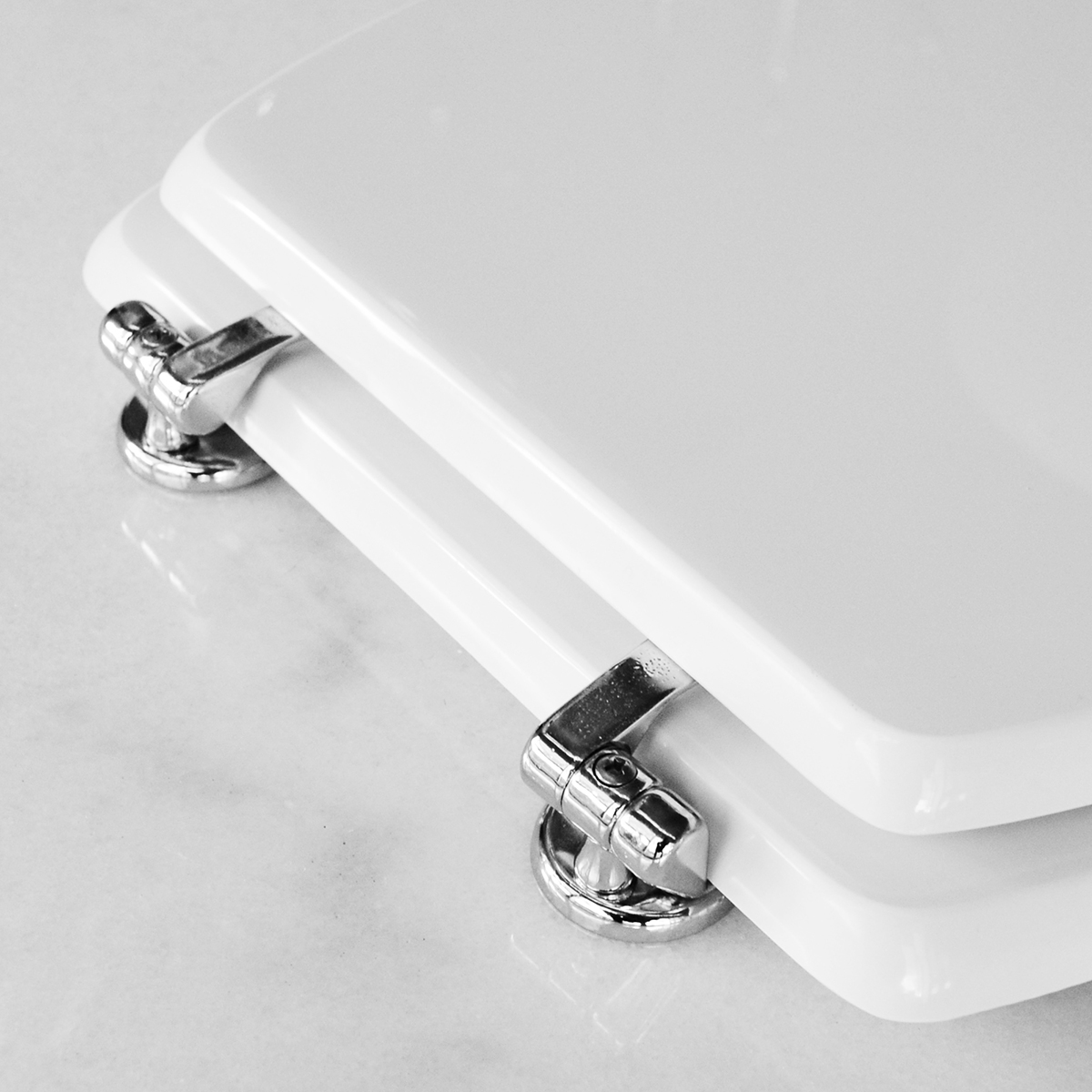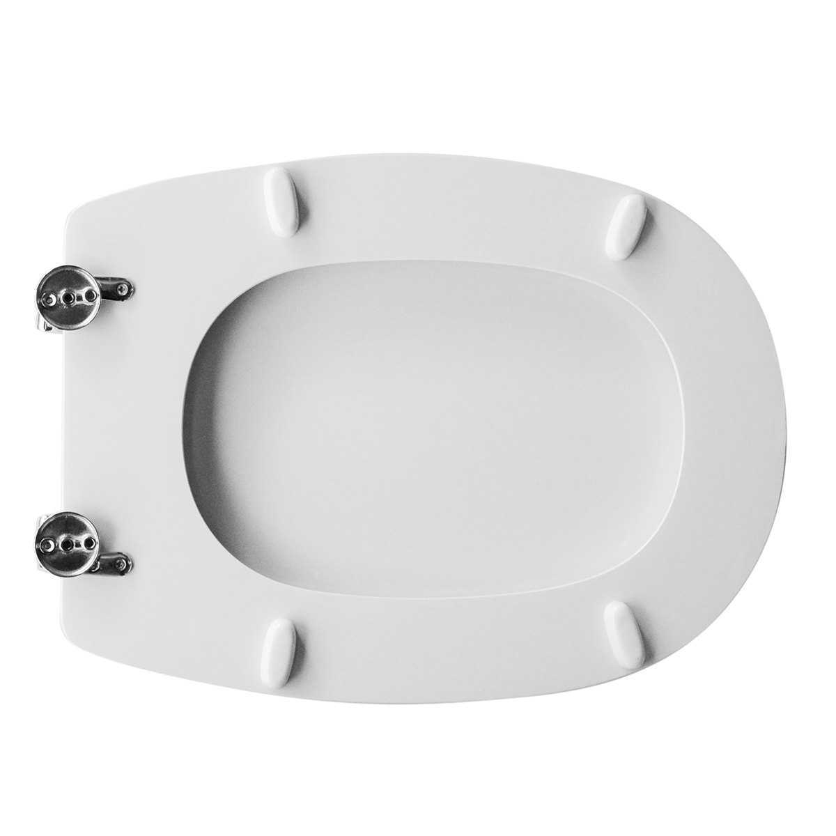 Sedile (Forma tipo 6 - cerniere tipo A) dedicato a casa ceramica Dolomite serie Lago. Dimensioni: Lunghezza cm 47-50; Larghezza cm 35,5; Interasse cerniere cm 10-21 mod. con cerniere regolabili. Sedile in legno stabilizzato, colato in poliestere. Cerniere in ottone cromato e viti di fissaggio in acciaio inox.