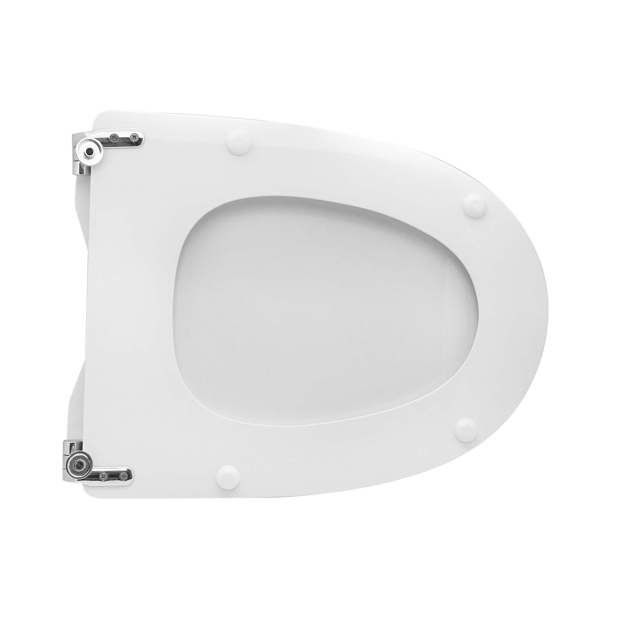Sedile (Forma tipo 4 - cerniere tipo A) dedicato a casa ceramica Hatria-Spea serie Majora. Dimensioni: Lunghezza cm 43; Larghezza cm 34; Interasse cerniere cm 27,5. mod. con cerniere fisse. Sedile in legno stabilizzato, colato in poliestere. Cerniere in ottone cromato e viti di fissaggio in acciaio inox.