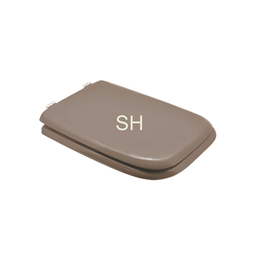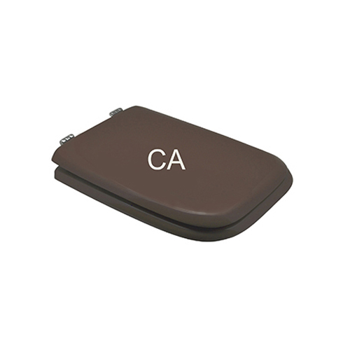 Sedile (Forma tipo 8 - cerniere tipo B) dedicato a casa ceramica Ideal Standard serie Conca. Dimensioni: Lunghezza cm 44; Larghezza cm 35; Interasse cerniere cm 16. Cerniere fisse. Sedile in legno stabilizzato, colato in poliestere. Cerniere in ottone cromato e viti di fissaggio in acciaio inox.