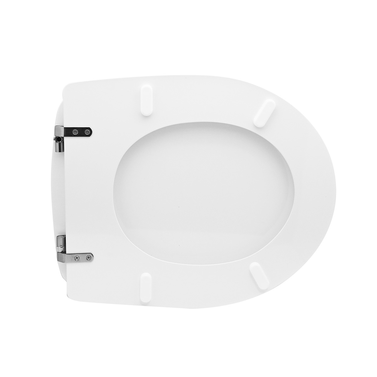 Sedile (Forma tipo 6 - Cerniere tipo A) dedicato a casa ceramica Pozzi Ginori serie Idea Plus. Dimensioni: Lunghezza cm 40-44,5 ; Larghezza cm 37; Interasse cm 12-22. Sedile in legno colato in poliestere. Cerniere e viti di fissaggio in acciaio inox.