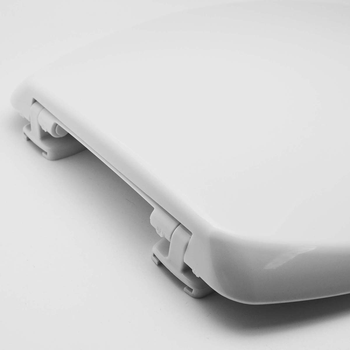 Sedile Universale in materiale termoplastico interamente ricilabile, progettato per applicazioni Commerciali e Residenziali. Dimensioni: Lunghezza: cm 42.5 - 44.5; Larghezza: cm 36.7; Interasse cm 14 - 16.5, Cerniere tipo A.