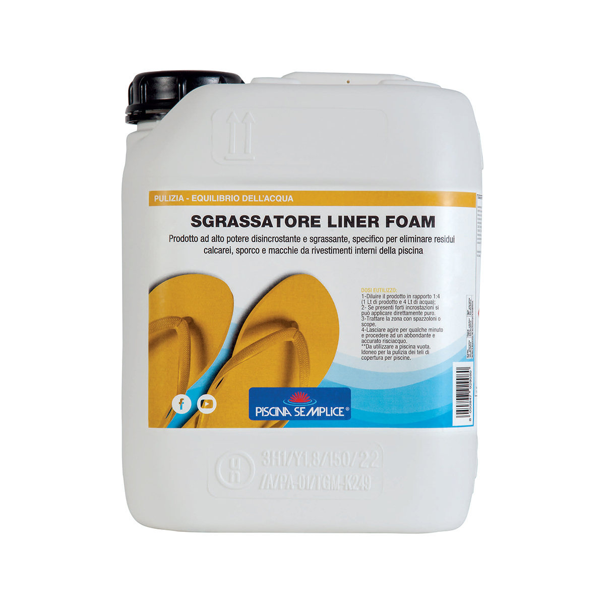 Sgrassatore per teli interni piscina non schiumogeno. Prodotto liquido disincrostante e detergente per rimuovere residui di calcare, sporco e macchie dal telo della piscina. Da utilizzare a piscina vuota risciacquando abbondantemente; utilizzabile anche per la pulizia dei teli di copertura invernali. Utilizzabile puro o diluito. Non schiumogeno.